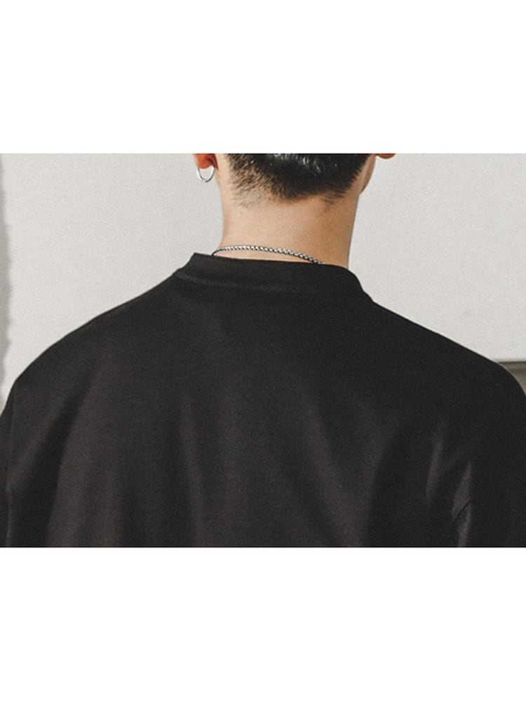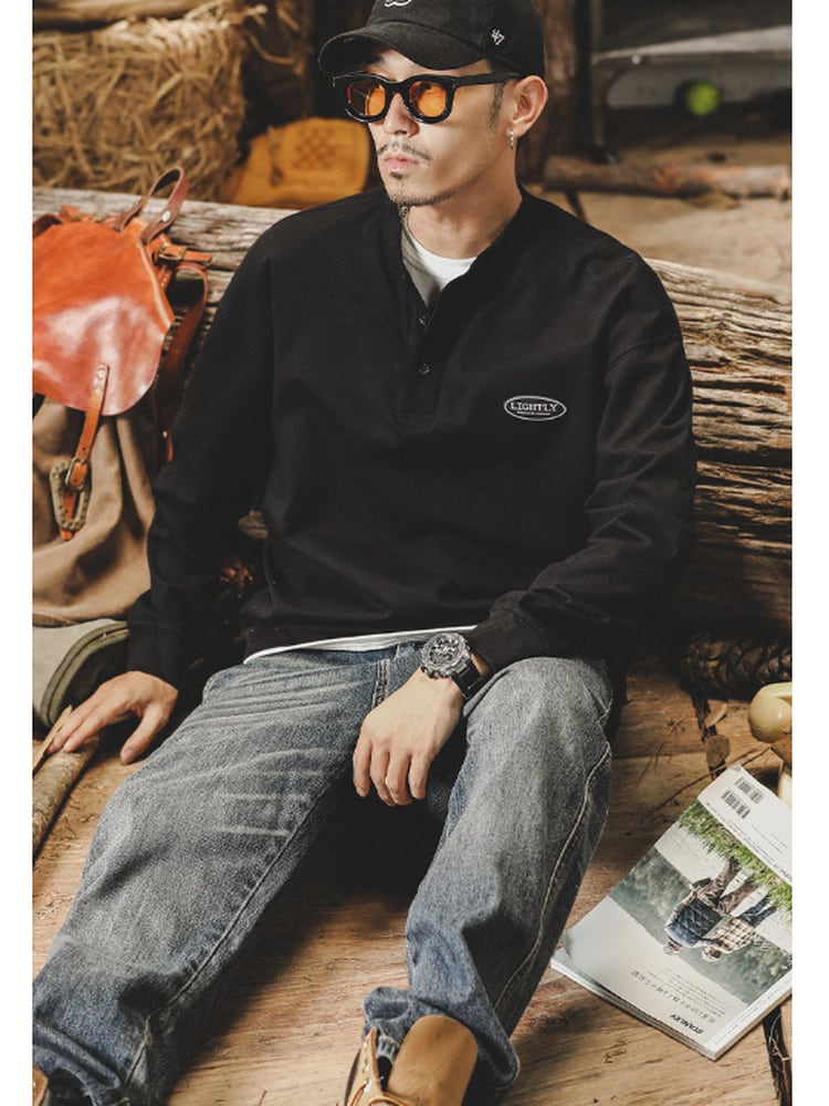 Band-Collar Patch Long Polo Shirt【L0538】